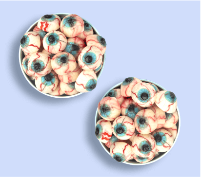 En nuestra constante investigación para saber qué es lo que causa más terror a los consumidores, hace algunos años incluimos las chuches con forma de ojo en nuestro catálogo. Fueron un éxito absoluto, incorporándose rápidamente entre las más buscadas y vendidas de todo el mundo.